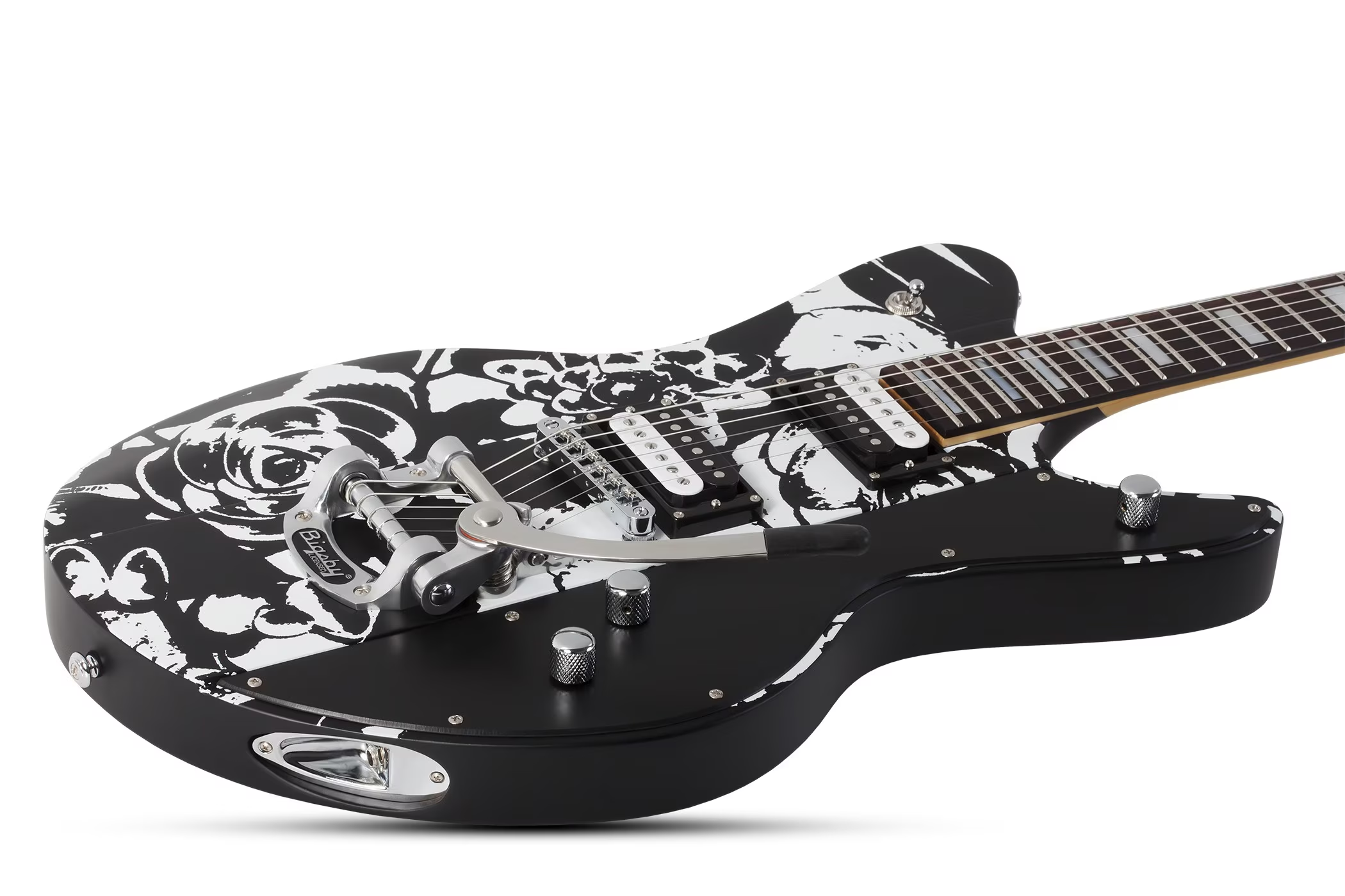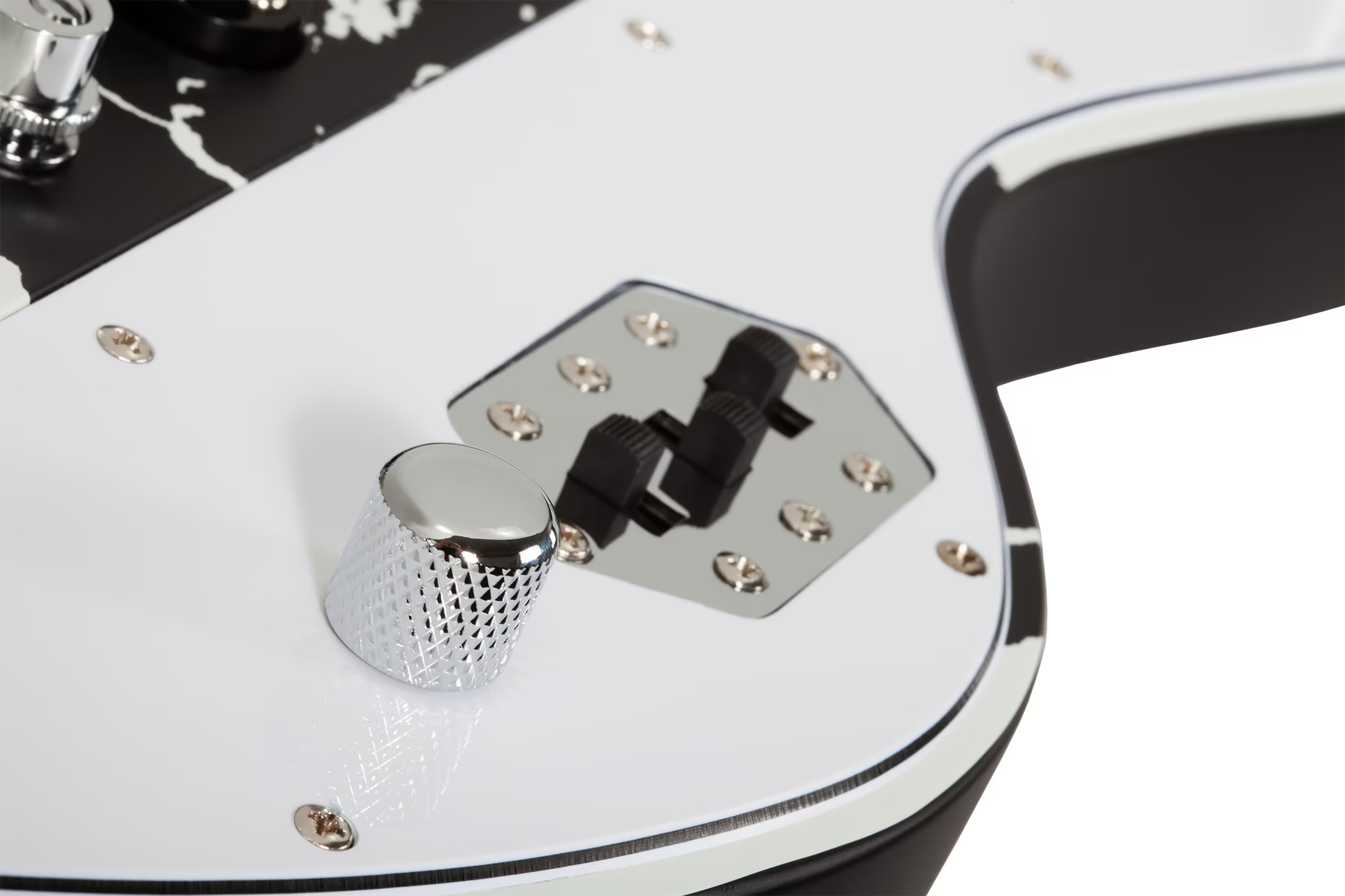 Con un acabado nitro negro brillante y golpeador blanco, esta Jaguar está diseñada para ofrecerte todos los sonidos característicos de Marr, pero también puede mostrar su potencia si decides incluir un pedal de overdrive en tu pedalera.