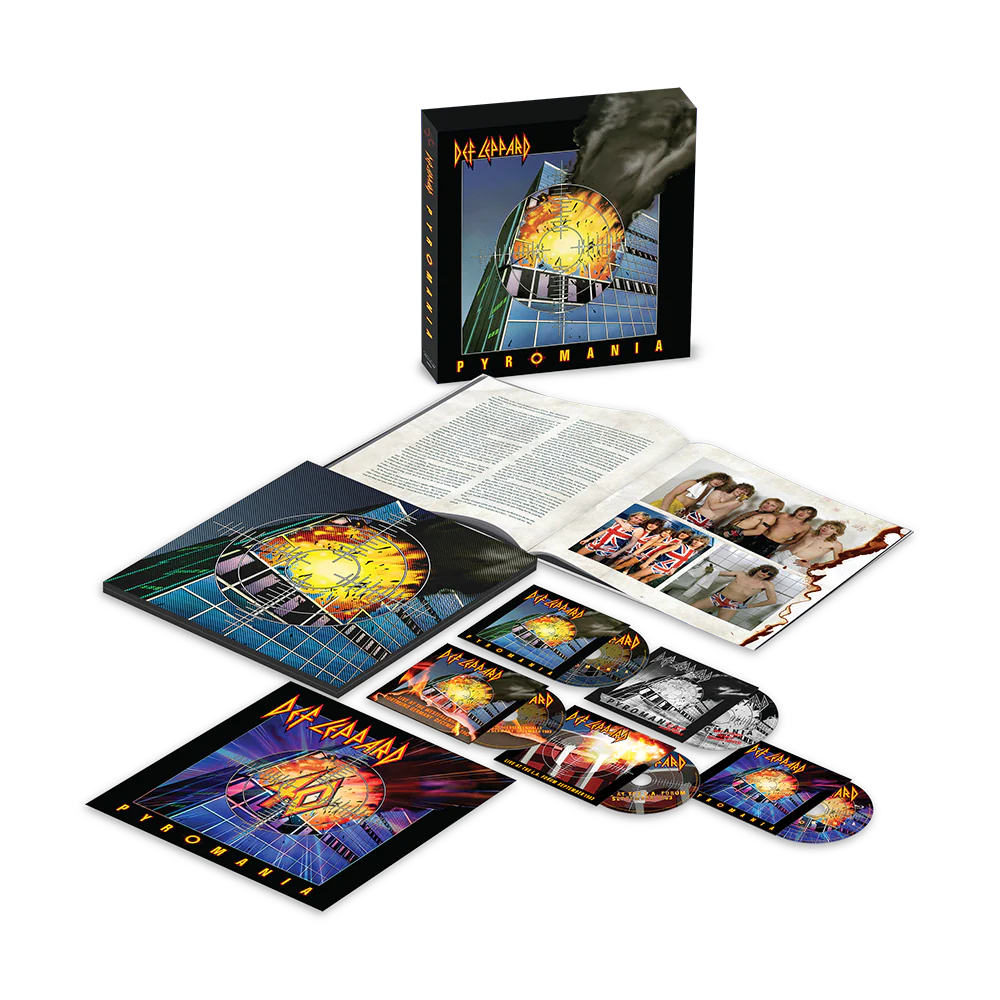 «Pyromania», la edición de aniversario, se lanzará en caja de 4 CD/Blu-ray, 1 LP half speed master, 2 LP en vinilo negro, 2 LP en vinilo de color (exclusivo de D2C), 2 CD y en formato digital.