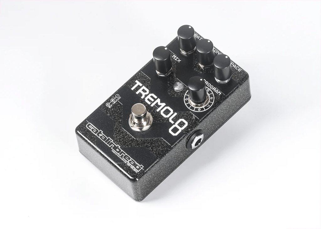 Lo que es bastante ingenioso es la opción de cambiar el orden de los dos efectos. Por lo tanto, puedes elegir si el trémolo debe aplicarse antes o después de la reverb. El pedal también funciona tanto en bypass real como en bypass con búfer silencioso, lo que permite la máxima flexibilidad en términos de procesamiento de señal.