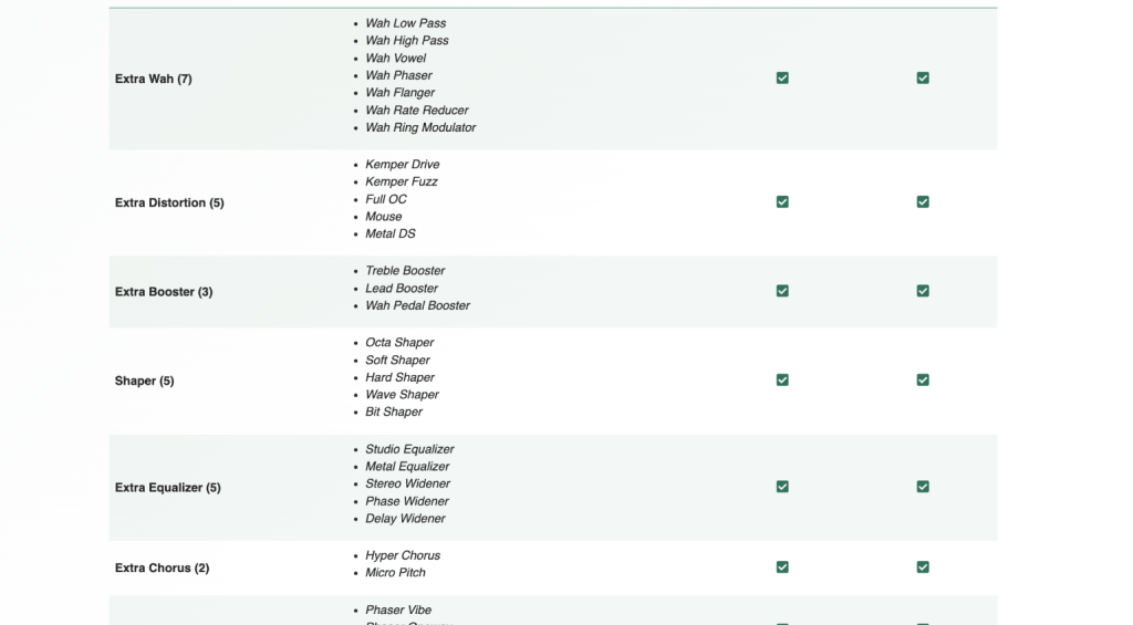 En total, obtienes más de 240 modelos de amplificadores, más de 45 DynaCabs clásicos y modernos, y más de 325 efectos que abarcan desde overdrive y reverb hasta trémolo, delay y mucho más. Al igual que los amplificadores, estos se potencian con algoritmos Axe-Fx III.