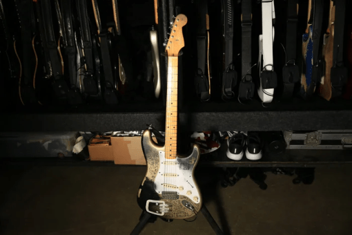 Esta es la Strat «caballo de batalla» de Shinoda, una fiel compañera de toda la vida que aparece en canciones como «What I’ve Done». Shinoda se ha aburrido muchas veces durante las giras, y en un momento dado, empezó a pintar sus guitarras para mantenerse ocupado, incluyendo esta Strat.