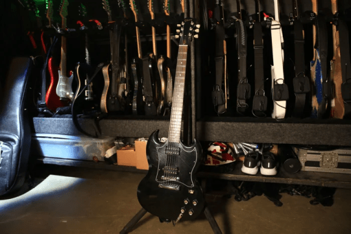 Esta Gibson SG negra apareció en escena en torno al tercer disco de Linkin Park, Minutes to Midnight de 2007.