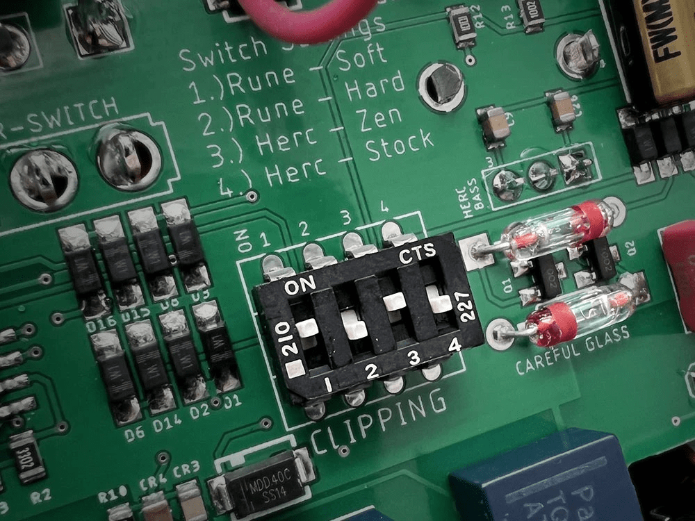 Dentro de la carcasa, cuatro miniinterruptores DIP con más opciones de recorte para ambos circuitos esperan a cualquiera que disfrute de los ajustes.