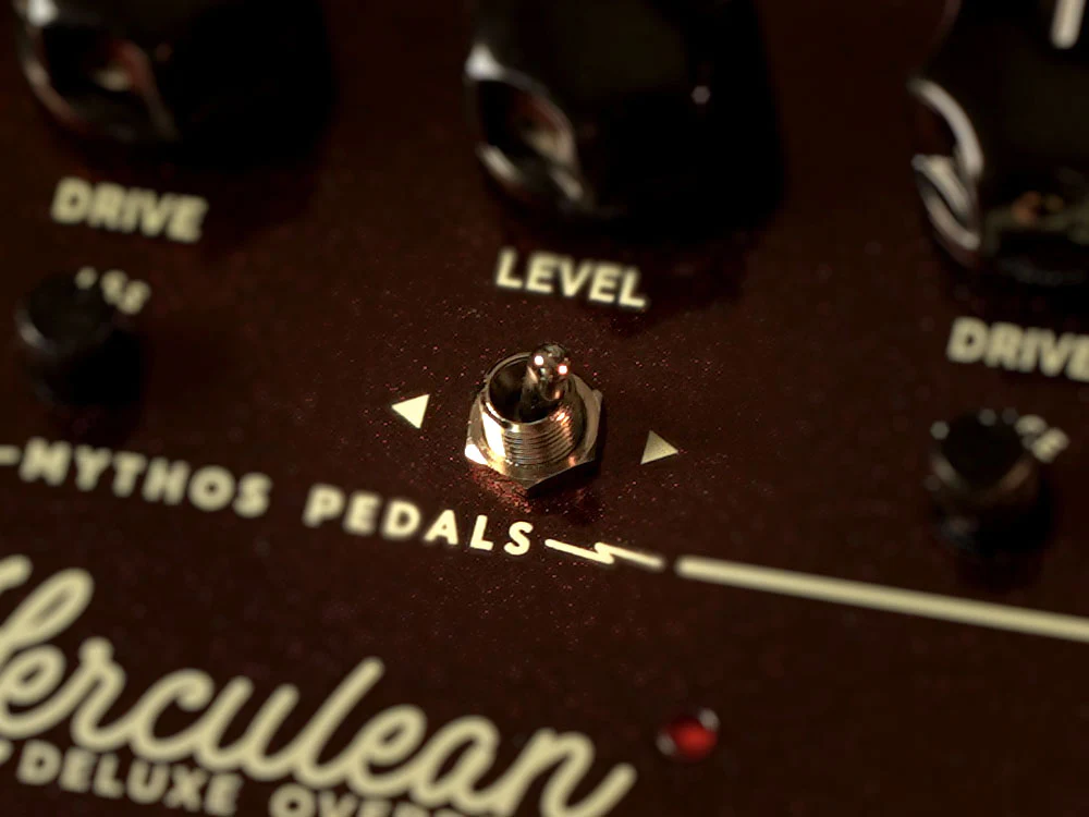 El Herculean Deluxe es la última incorporación de Myth Pedals al mundo de los overdrives dobles, sobre todo debido a la gran demanda de los fans de Myth. En el lado izquierdo del pedal está el circuito del Herculean, que se considera una navaja suiza entre los drives y cubre una amplia gama desde Clean Boost hasta sonidos tipo Dumble.