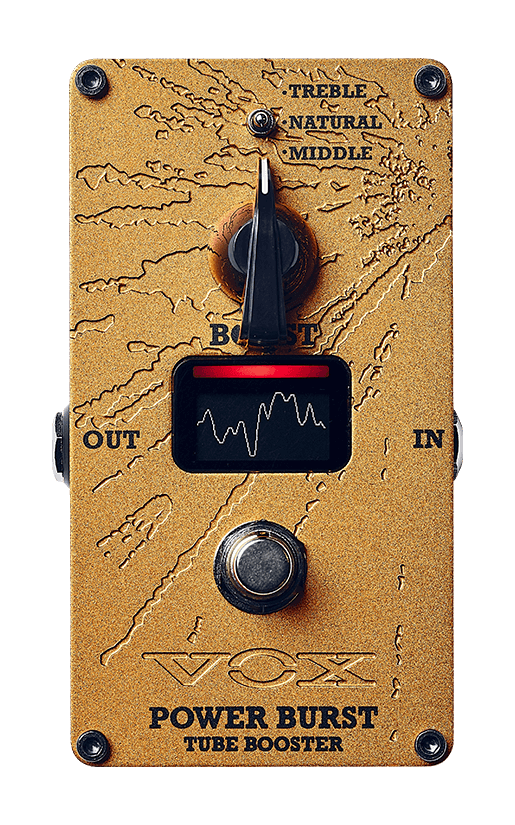 En primer lugar, el Power Burst es un efecto boost de una solo control con tres modos, y este pedal de refuerzo proporciona compresión natural y sustain adicional.
