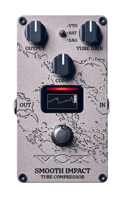Vox ha desarrollado un buffer natural de alta calidad para cada pedal. Este nuevo circuito buffer ayuda cuando los efectos están apagados y permite que tu guitarra mantenga una sensación y respuesta natural. Cuando los efectos están activados, el búfer mantiene la ruta de la señal de Nutube agradable y fluida.