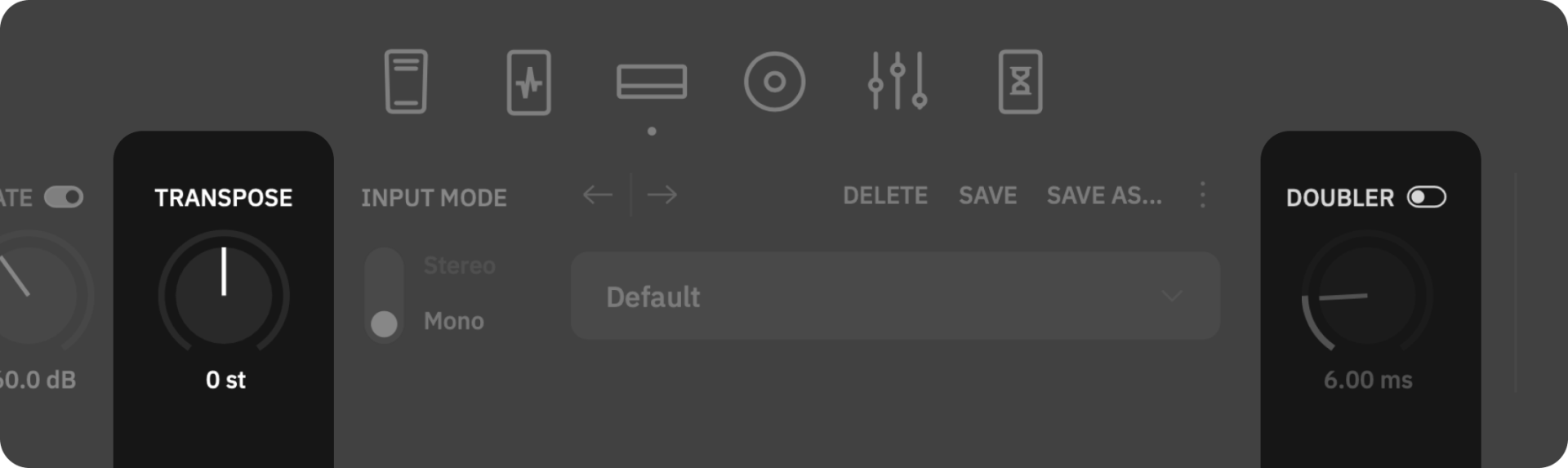 En términos de lo que hacen esas nuevas funciones, bueno, Doubler es una emulación estéreo bastante sencilla, que te da la sensación de un disco de doble pista, mientras que Transpose te permite cambiar el tono en +/- 12 semitonos, esencialmente afinando tu guitarra al instante. .