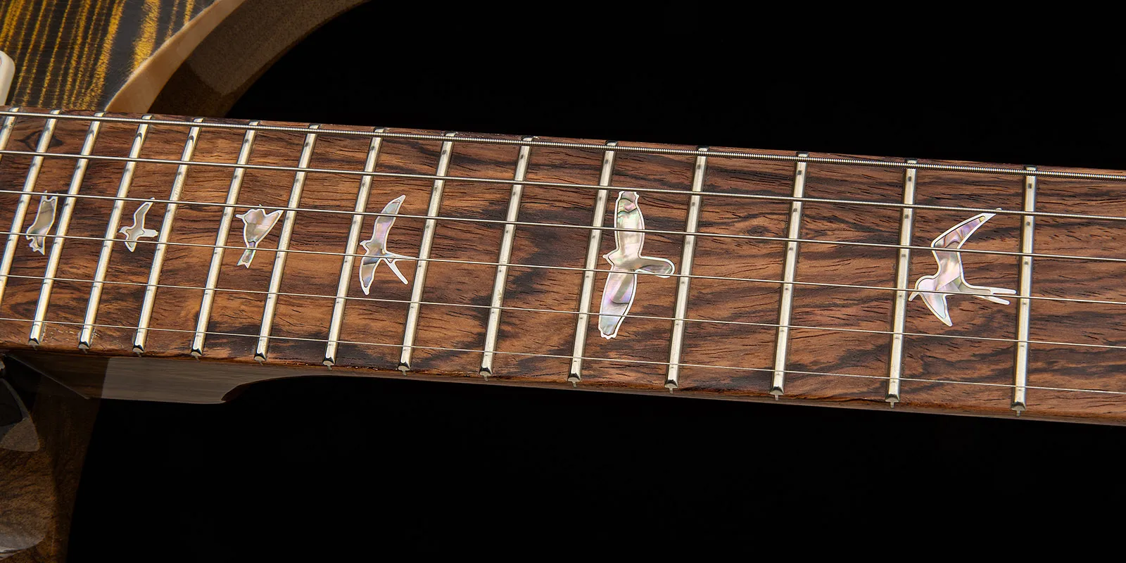 Entre sus especificaciones se incluyen una escala de 25”, 22 trastes, un radio de diapasón de 10” y un mástil con perfil Pattern. Las incrustaciones de pájaros “Old School” con contorno y el águila “Pre-Factory” en la pala rinden homenaje a las primeras guitarras PRS. El trémolo patentado PRS Gen III, los afinadores de bloqueo PRS Phase III con botones de ala y las cuerdas PRS Signature 10-46 completan las especificaciones.
