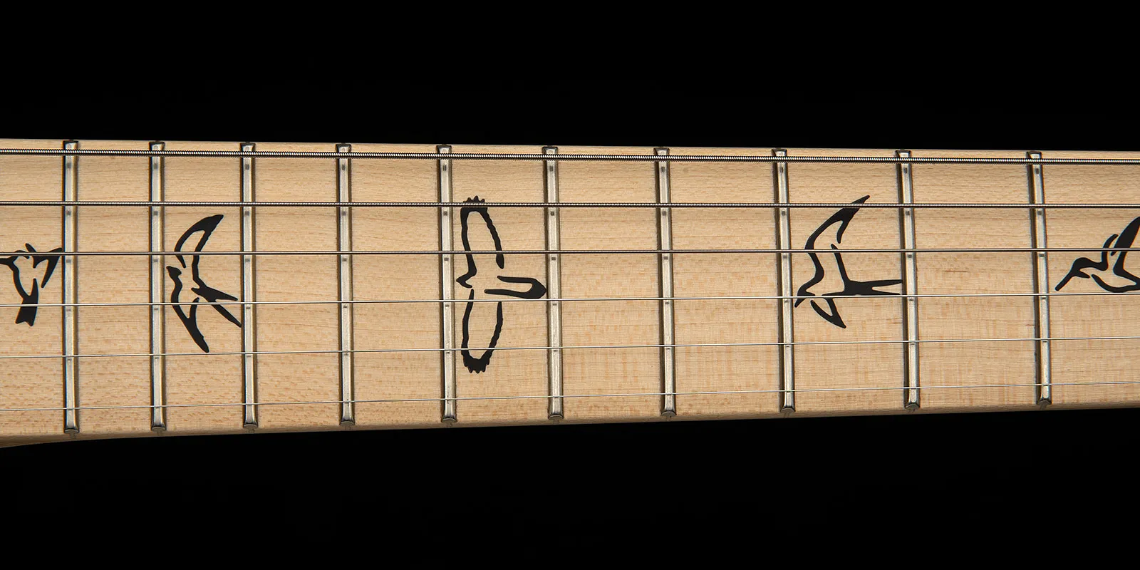 La PRS S2 Mira 594 cuenta con un mástil Pattern Thin de 22 trastes con una escala de 24.594″. El puente PRS stoptail con insertos de latón y los clavijeros PRS Phase III con varillas de latón anclan esta guitarra, fomentando la resonancia y un tono abierto, asegurando la estabilidad de la afinación.