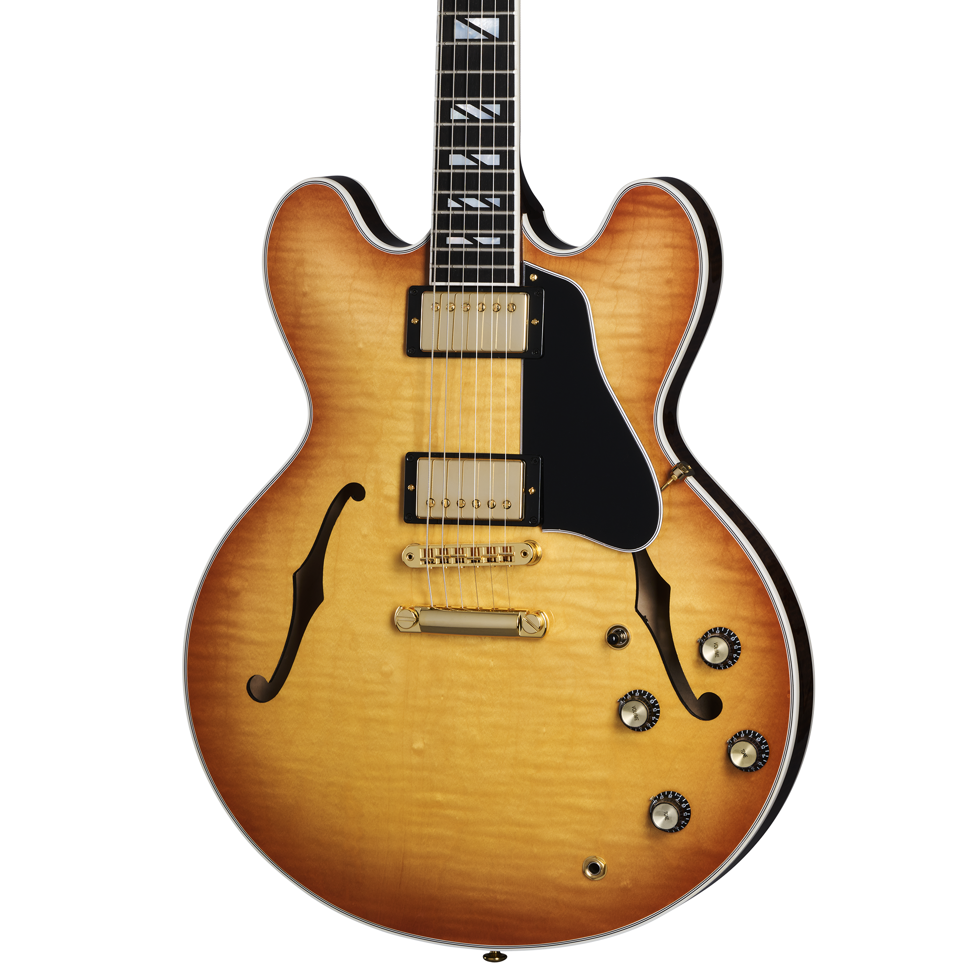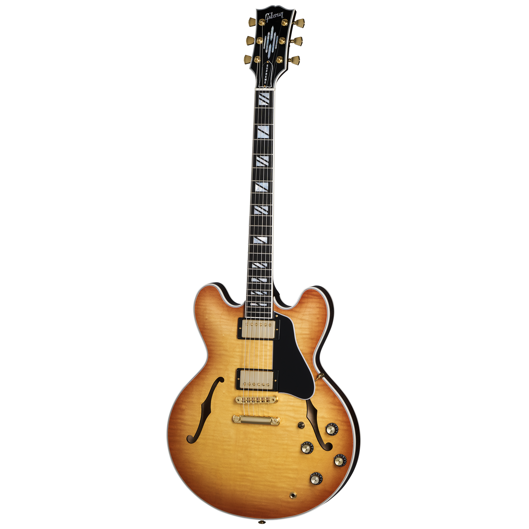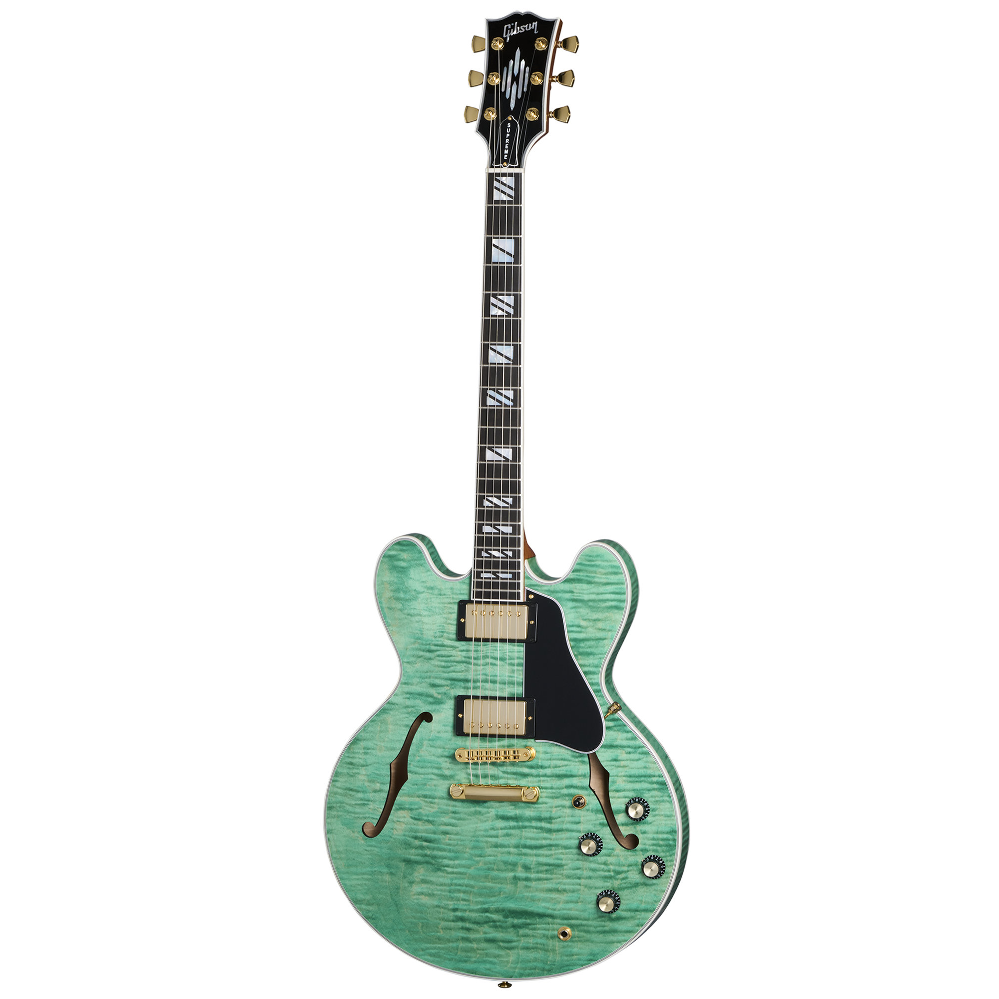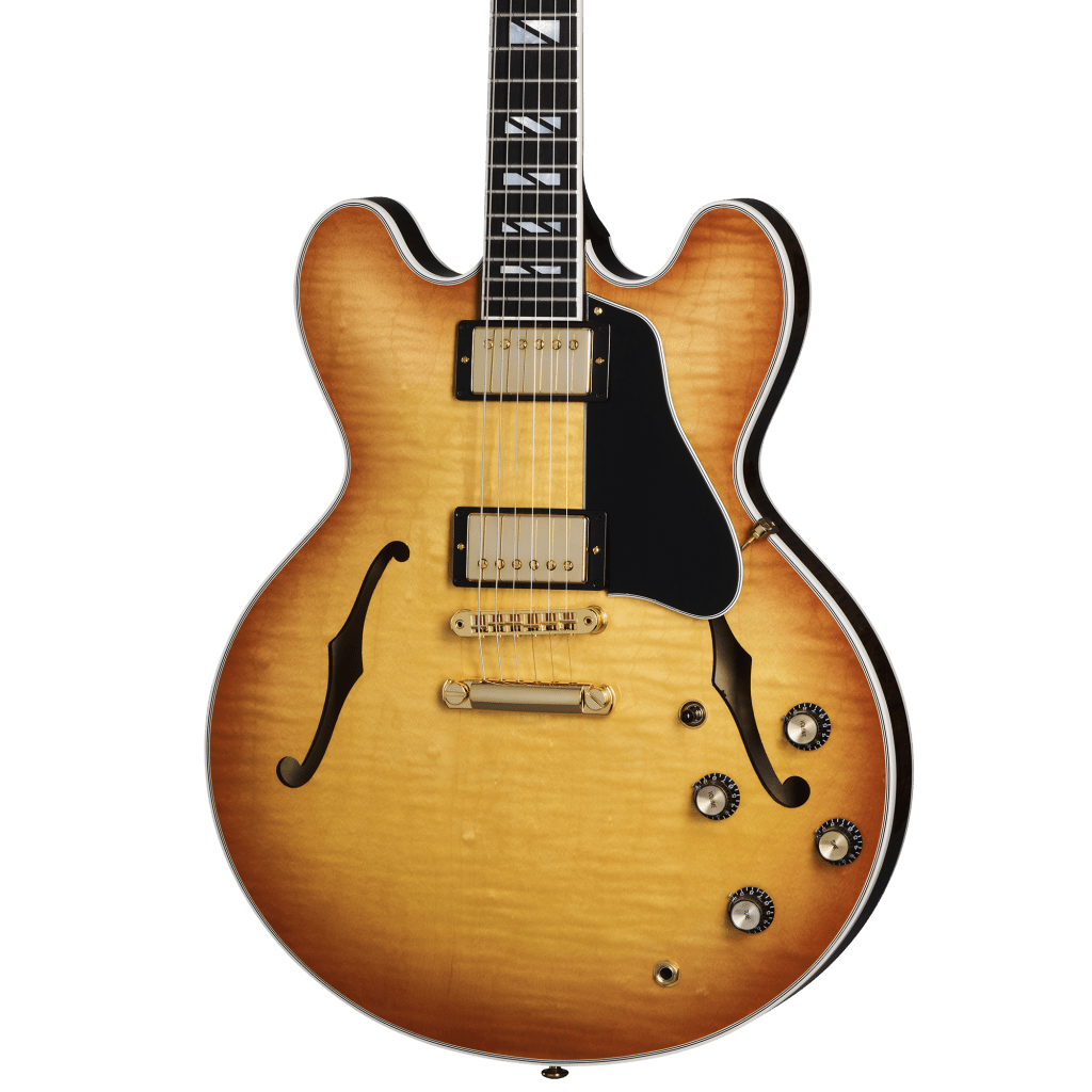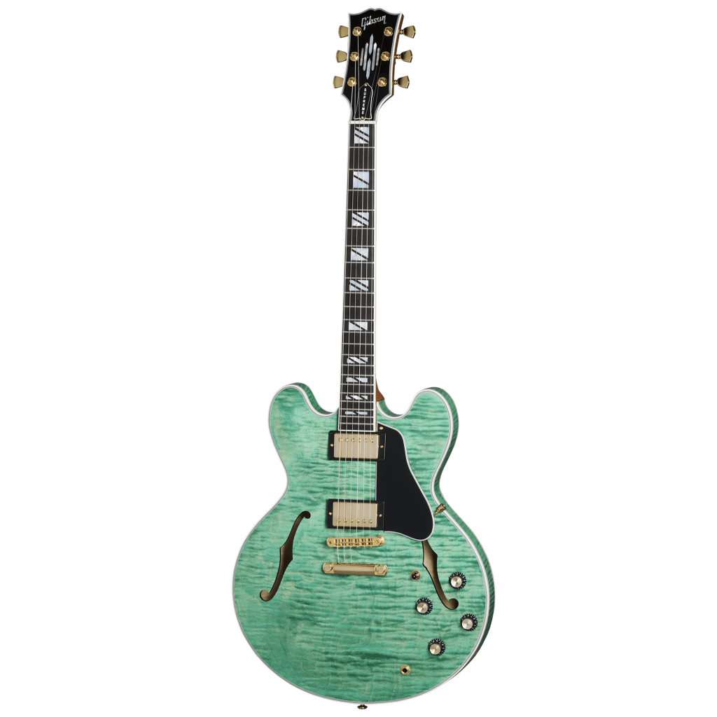 A primera vista, es posible que la versatilidad no esté en su mente. La ES Supreme se centra en esos acabados. Está disponible en todo el mundo en Bourbon Burst, Blueberry Burst y Seafoam Green, y directamente de Gibson en un exclusivo acabado Royal Tea, además de una versión Ebony con tres pastillas si el arce figurado no es lo tuyo.