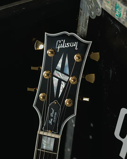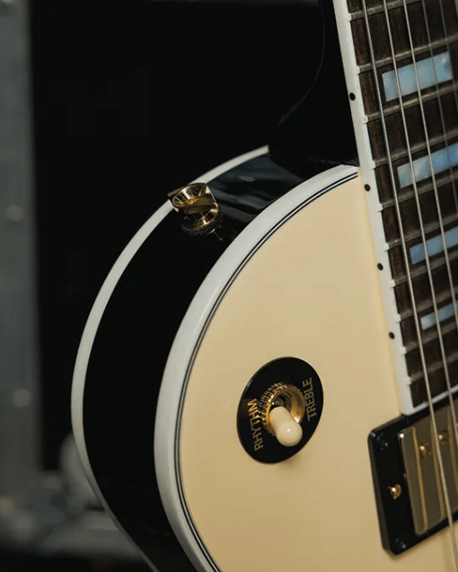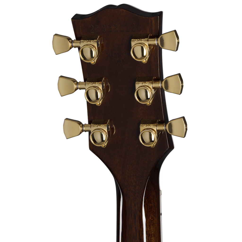 La pala alberga la famosa incrustación Custom Split Diamond, también en nácar. La estética clásica de la guitarra se ve realzada por los herrajes dorados, que incluyen un puente Nashville Tune-O-Matic de aluminio, un cordal Stop Bar de aluminio y clavijeros Grover Rotomatics de giro suave con botones Keystone para mayor estabilidad.
