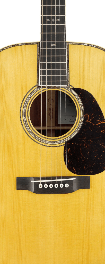 La guitarra rebosa evocaciones de la preguerra, gracias al varetaje en X de abeto Adirondack, inspirado en la época dorada, que potencia la resonancia y la proyección, y a una forma de mástil acorde con la época. Martin afirma que su ancho de cejuela de 1 11/16″ proporciona una sensación cómoda de preguerra.