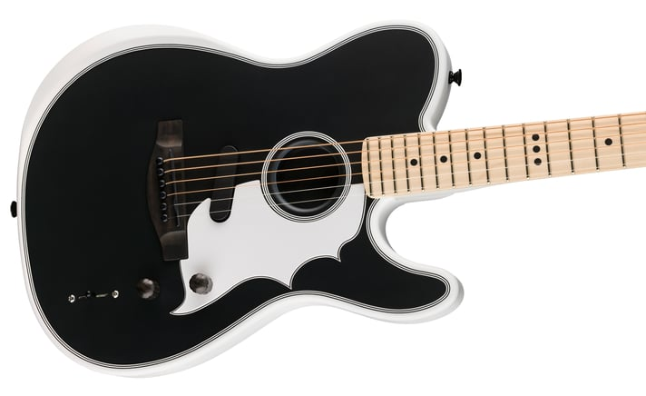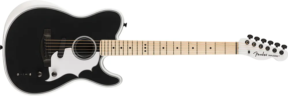 A la TripleCaster se suma la TripleSonic, una Acoustasonic en negro satinado y blanco ártico que ofrece características como una forma de mástil en V suave (a diferencia del perfil Deep C del modelo estándar), un golpeador de forma única y voces de pastillas seleccionadas por White.