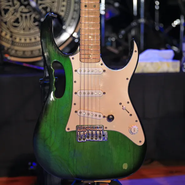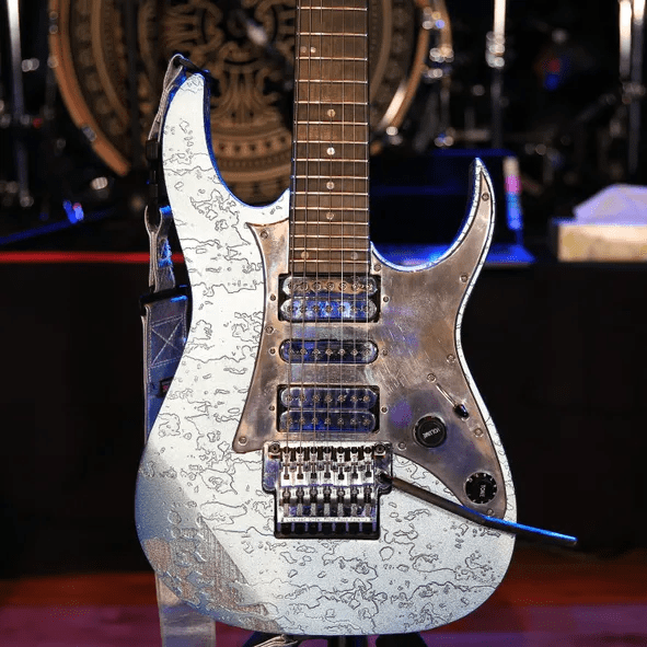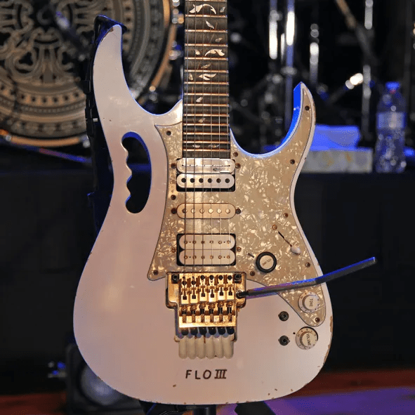 También en la gira Rox(postroph)y está la icónica Gibson SG de la era Roxy & Elsewhere de Frank. Al igual que la Les Paul, tiene un circuito de preamplificador para potenciar la señal, un ecualizador de barrido y puede lograr sonidos acústicos adyacentes a los piezoeléctricos. La configuración del preamplificador en este modelo ofrece toneladas de ganancia.