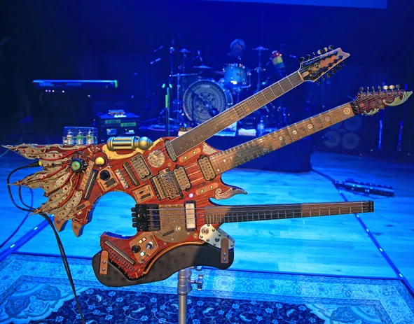 Antes de su concierto en el Minglewood Hall de Memphis en su gira Rox(postroph)y 2024, que celebró el 50º aniversario de los discos Apostrophe (‘) y Roxy & Elsewhere de Frank Zappa, Dweezil le mostró su configuración actual de gira. Hay mucho terreno por cubrir entre su catálogo y el de su padre, y a Dweezil le encanta el desafío, que afronta con una mezcla de su propio equipo y algunas ayudas vintage especiales cortesía de su padre.