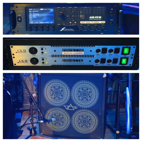Dweezil estaba usando el Fractal Axe-Fx II, y esta vez, ha actualizado al Axe-Fx III como base de su sonido. Dado el territorio sonoro que cubre en sus shows, simplemente se volvió demasiado difícil de manejar y costoso hacer giras con un equipo analógico.